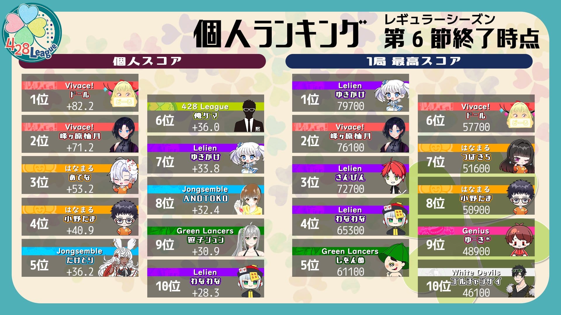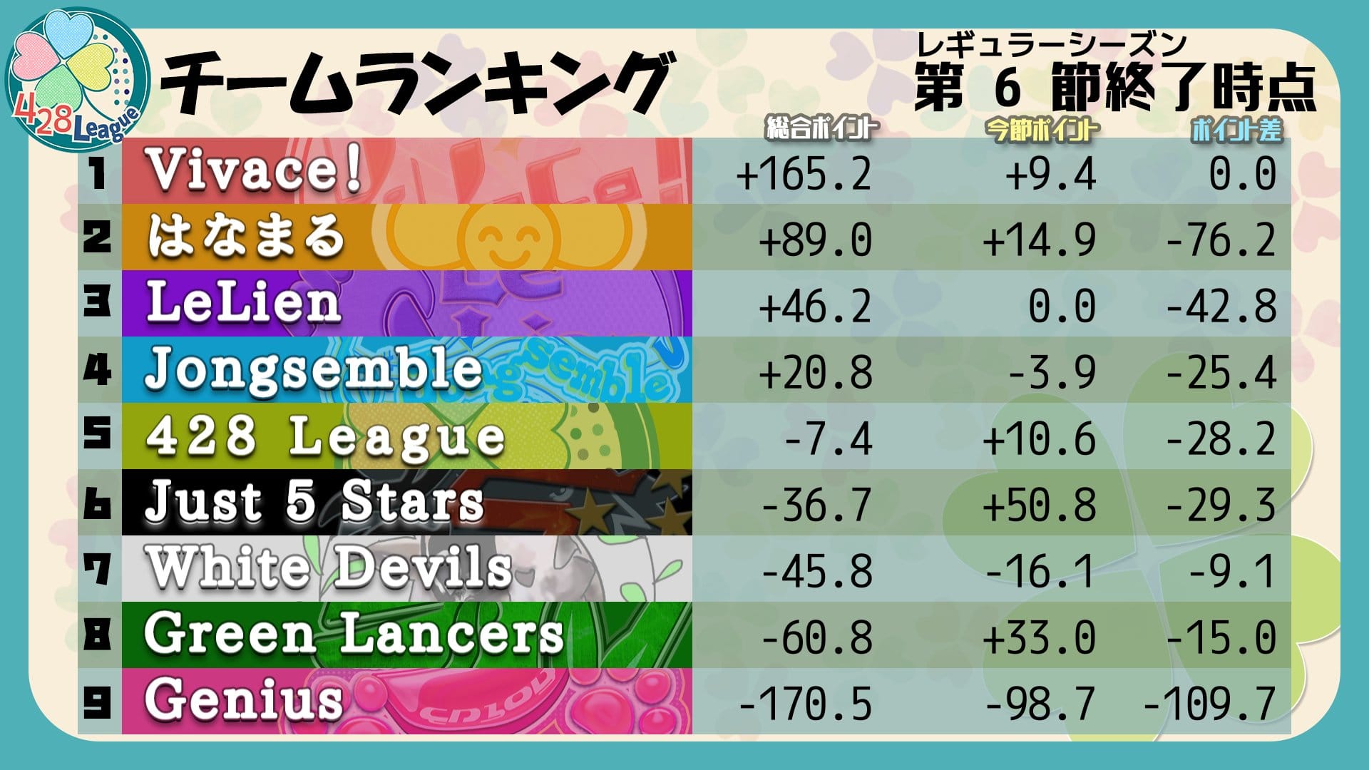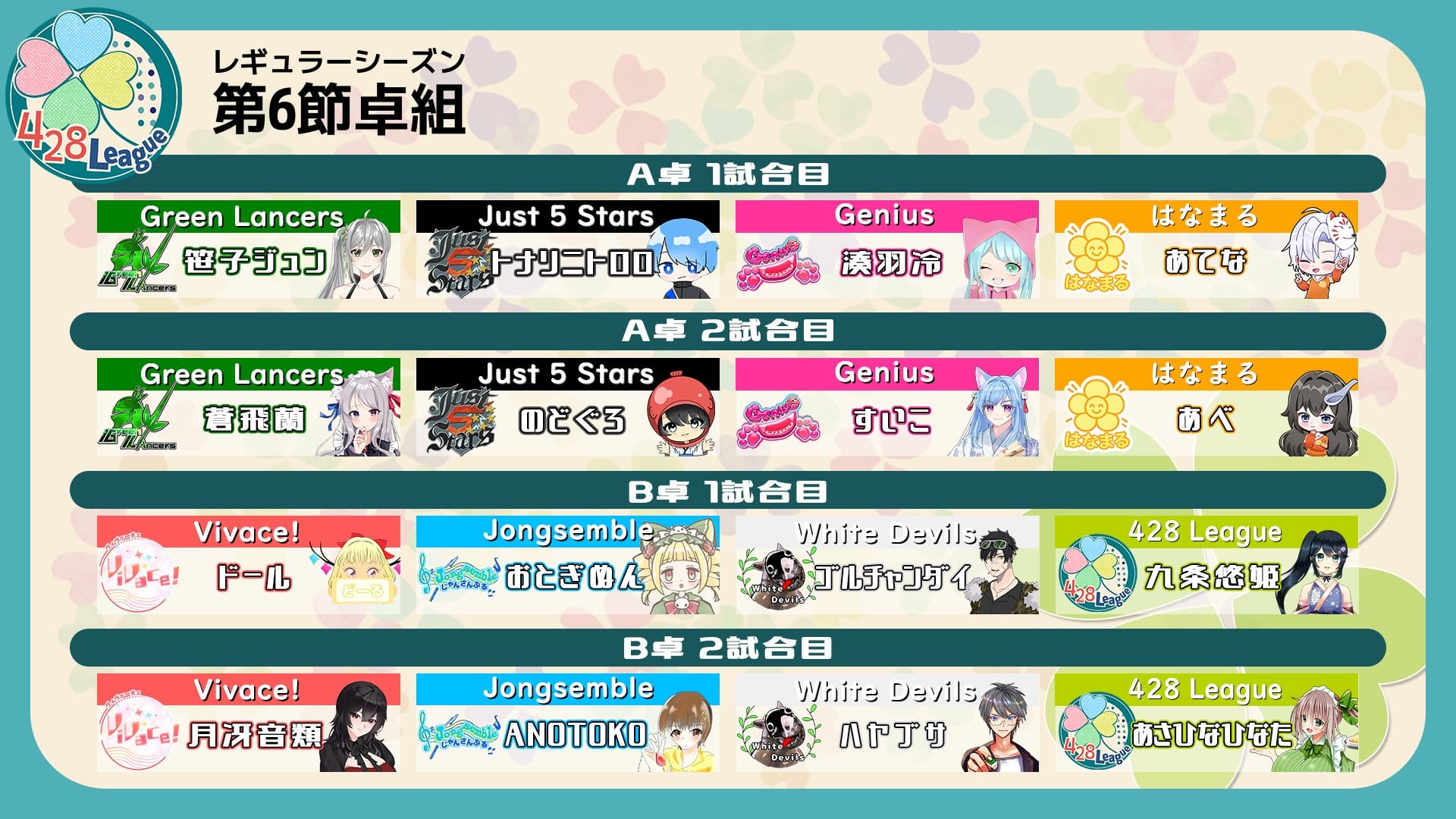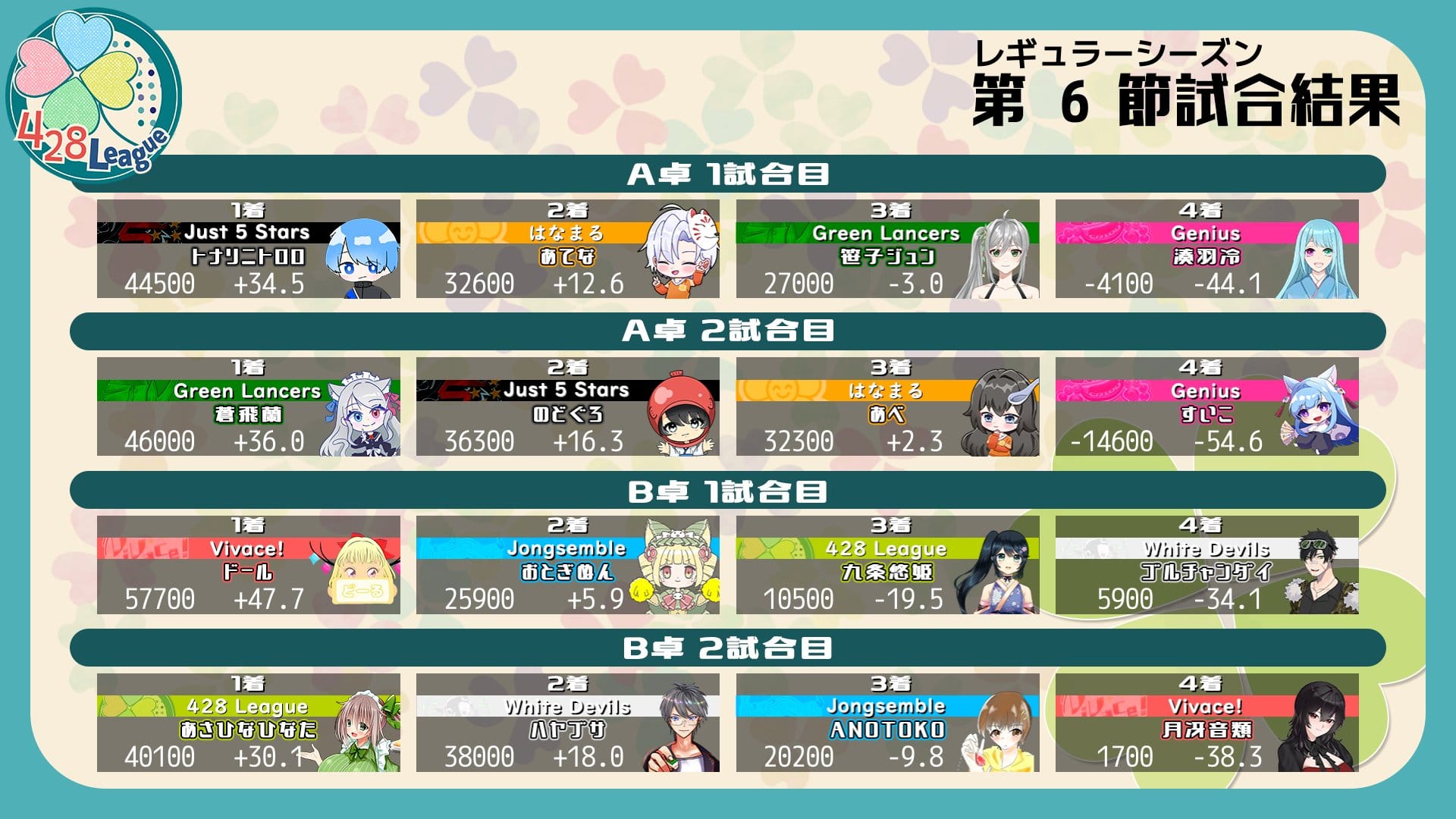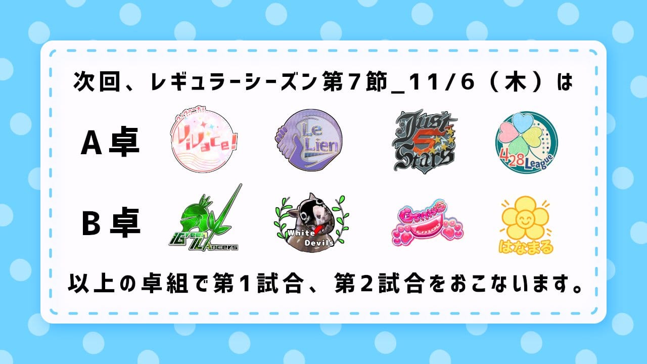 【よつばリーグ】いよいよレギュラーシーズン終盤に突入の第6節、結果は如何に!?