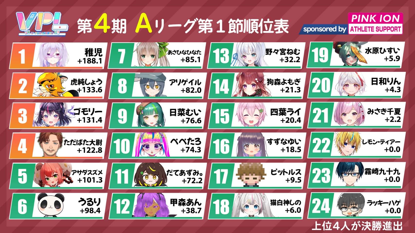 初日のトータルスコアでは第2期リーグ戦で決勝に進出した稚児選手が3連勝の大爆発、神域リーグ2024で大活躍を見せたゴモリー選手も全体3位と好スタート切りました。