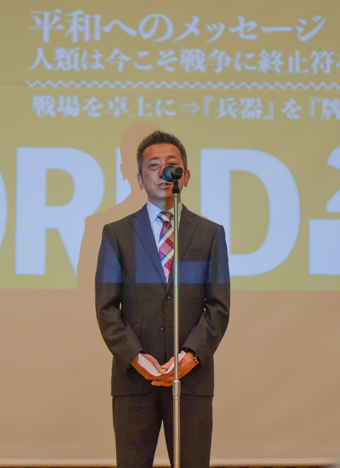 「ウエルネスマージャンが新たに目指すことは、国境を越えて世界中の人たちがマージャンを通じて交流し、その先にある平和を願うというものです。偶然にもマージャンにおけるピンフという手役、これを漢字で書けば『平和』なのです。ですので、今日は『平和』を狙いつつ勝負を楽しんで頂ければと思います」