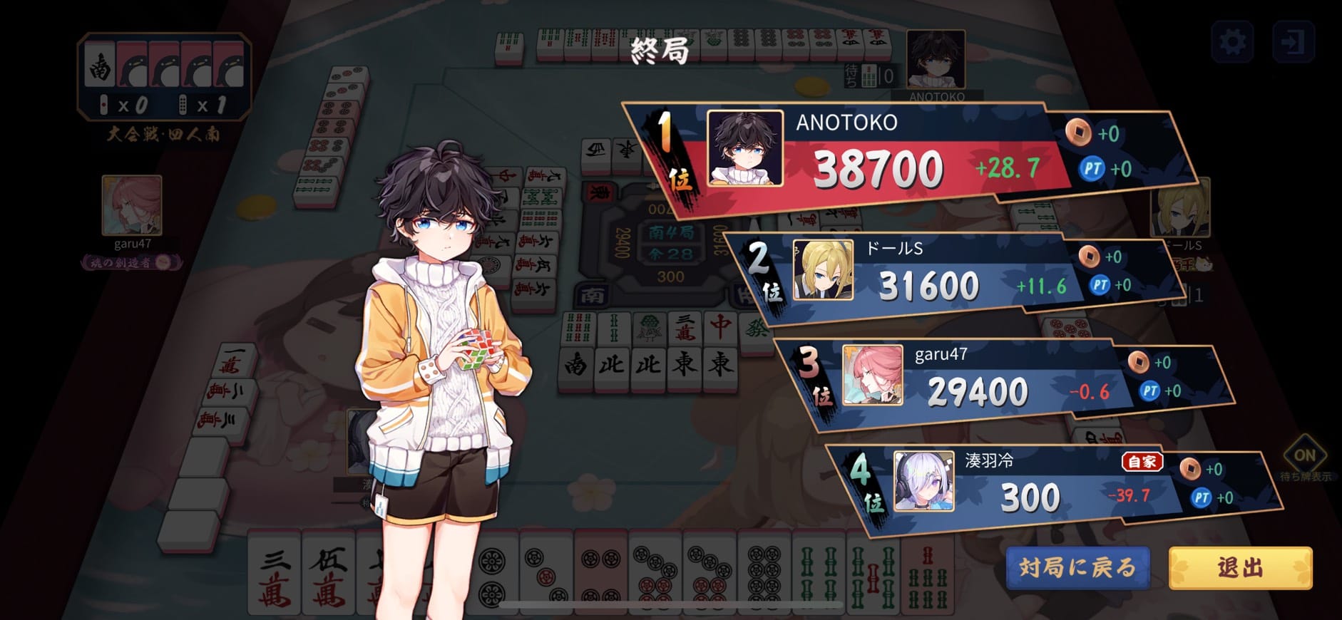 だが最後はANOTOKO選手が跳満をツモアガリ再びトップに返り咲き。