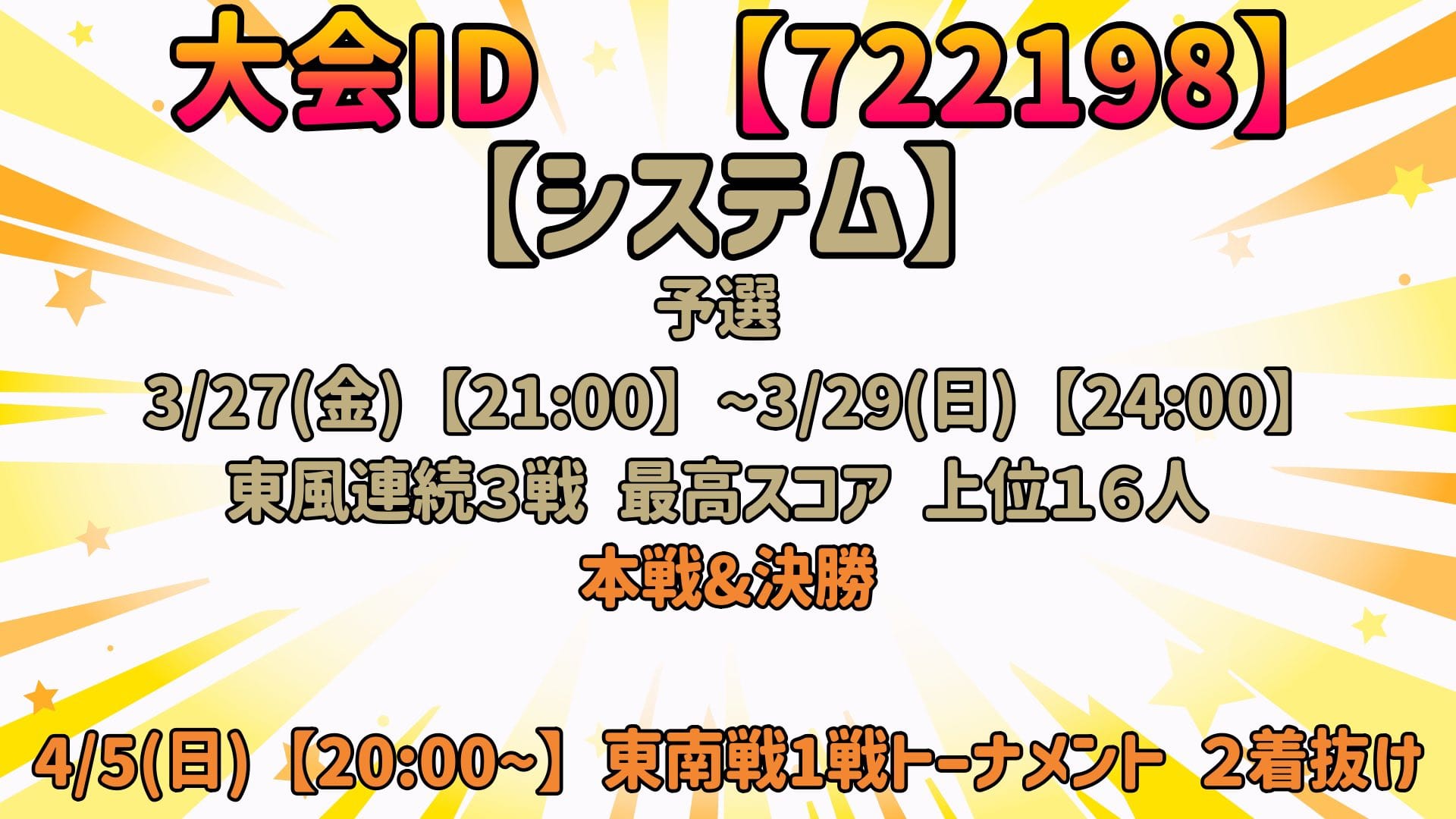上位16名が4月5日(日)の本戦へ進出。