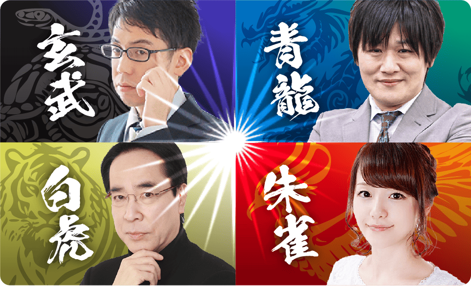 玄武:渋川難波プロ/青龍:多井隆晴プロ/白虎:土田浩翔プロ/朱雀:瑞原明奈プロ