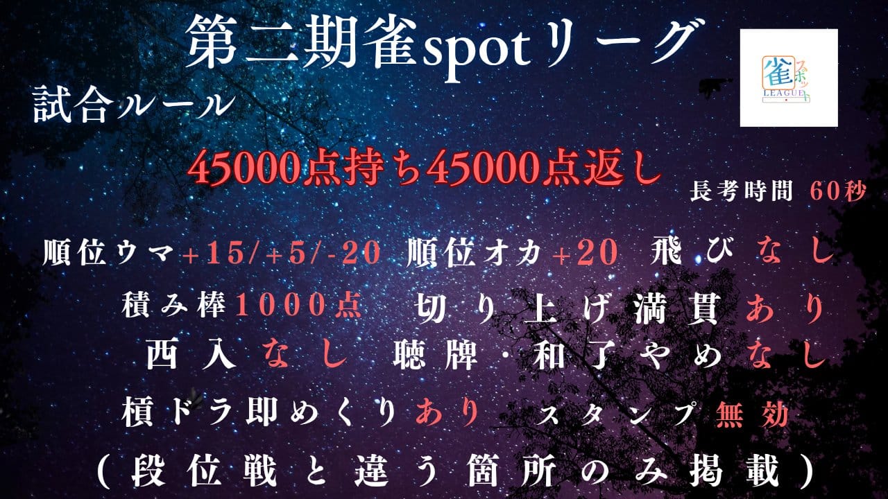 【雀spotリーグ】第2期が第4節まで進行中!次節は3月8日(日)21時より開催予定‼