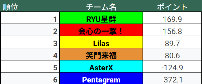 RYU星群が快勝し一気にポイントを伸ばす。
