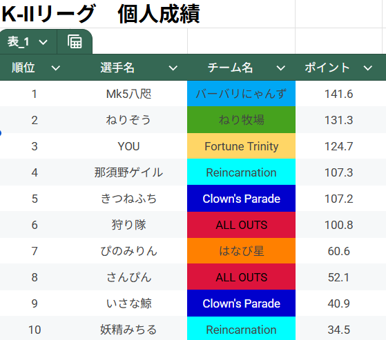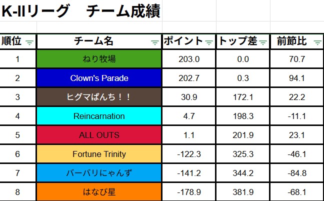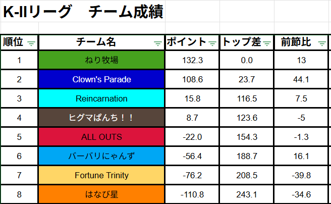 その後は2連続アガリを決めたK.S.ラヴ選手が2着獲得となった。