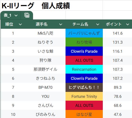 一方下位のチームは厳しい結果となり、首位と最下位のポイント差が243.1ポイントから381.9ポイントと大きく開く結果となった。