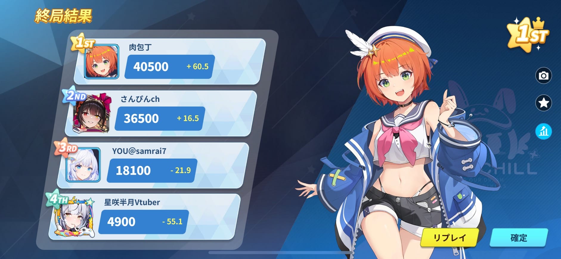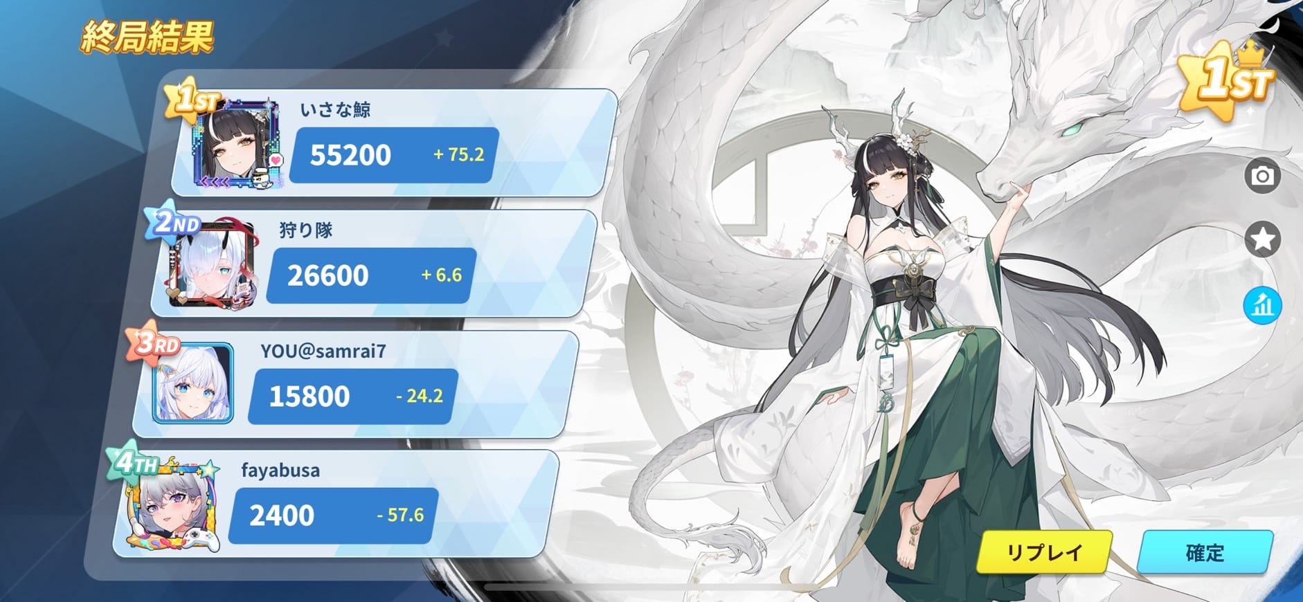 その後はロン・ツモアガリ入り乱れ南1局にはかなで選手が逆転するも、最終的にはわなわな選手がトップでの決着となった。