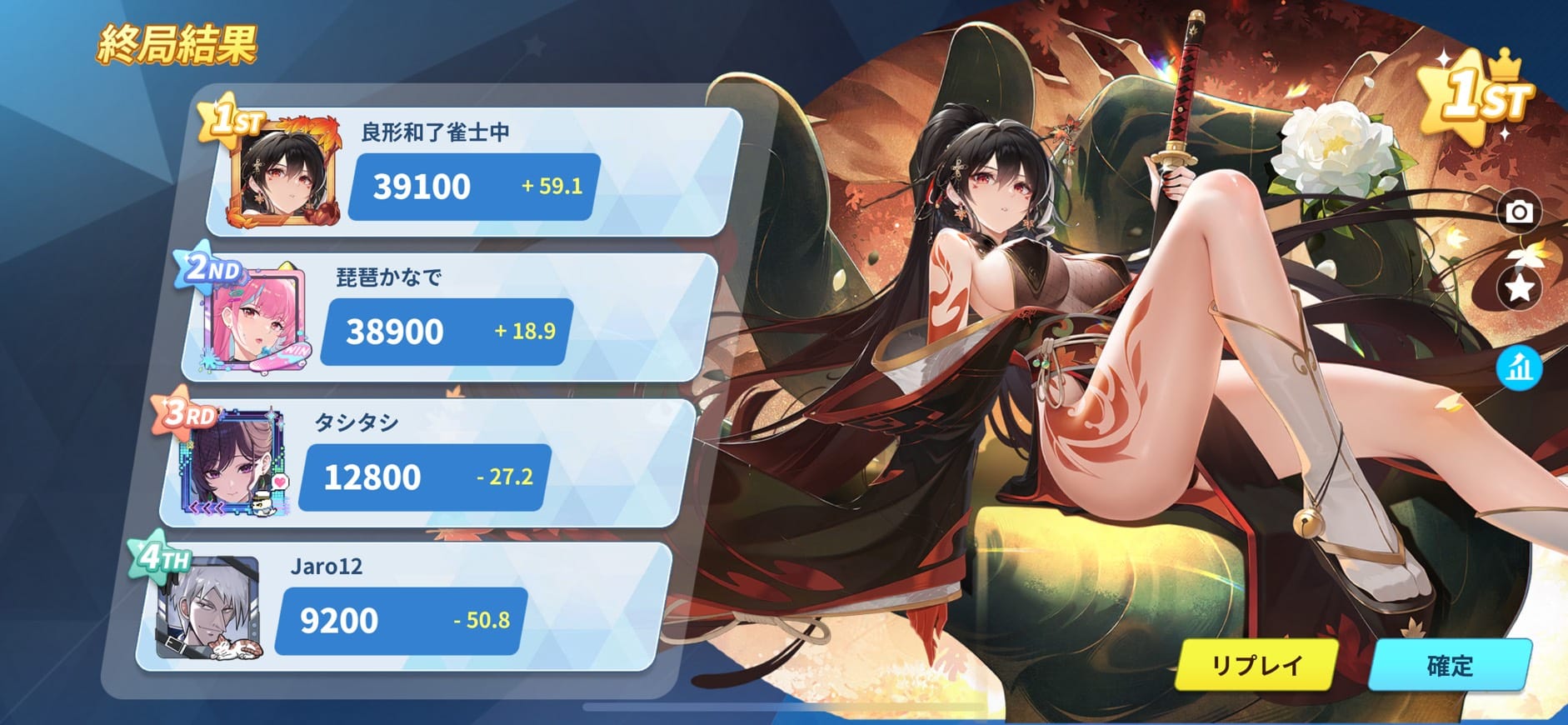 さらに流局を挟み11600は14000、5800は8500と出アガリ大暴れで見事トップを獲得した。