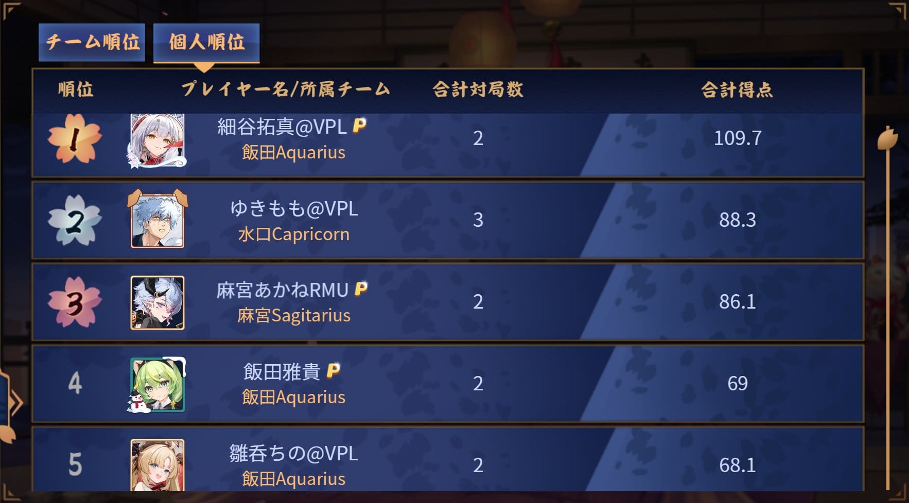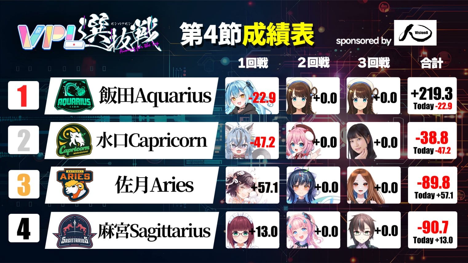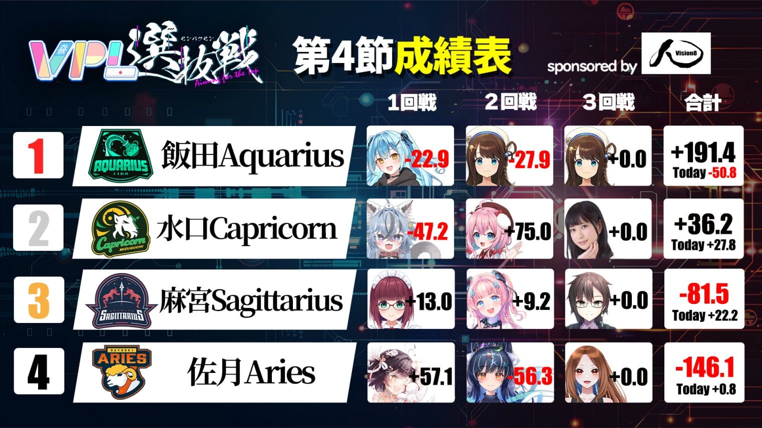 【VPL】第2回VPL選抜戦第4節、Capricornがトップを猛追!