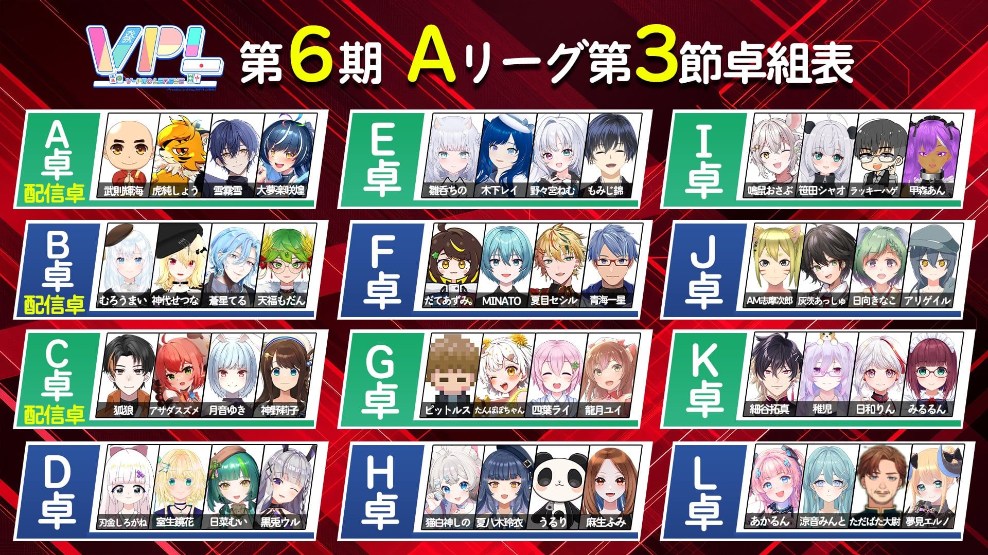 V-pro leagueは全5節で争われ、1節につき同じメンツで3半荘行われる。