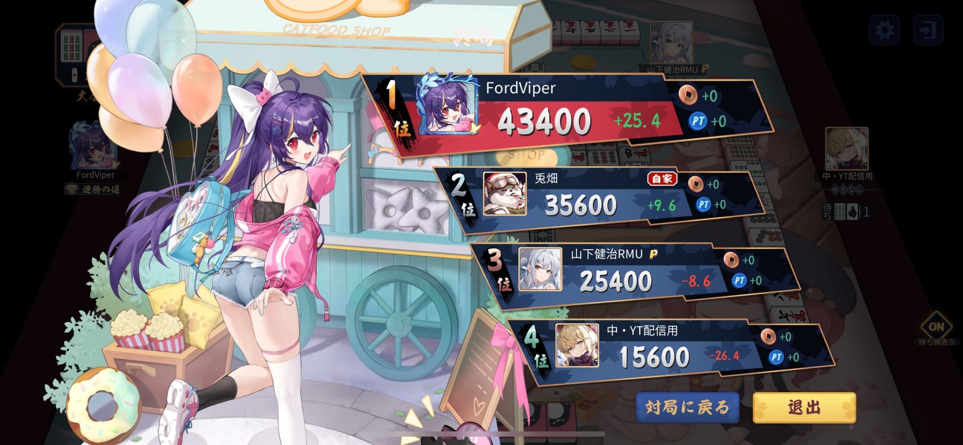 その後はClassicルールにしては珍しくアガリの多い乱打戦となるが、FordViper選手が見事逃げ切りトップを獲得した。