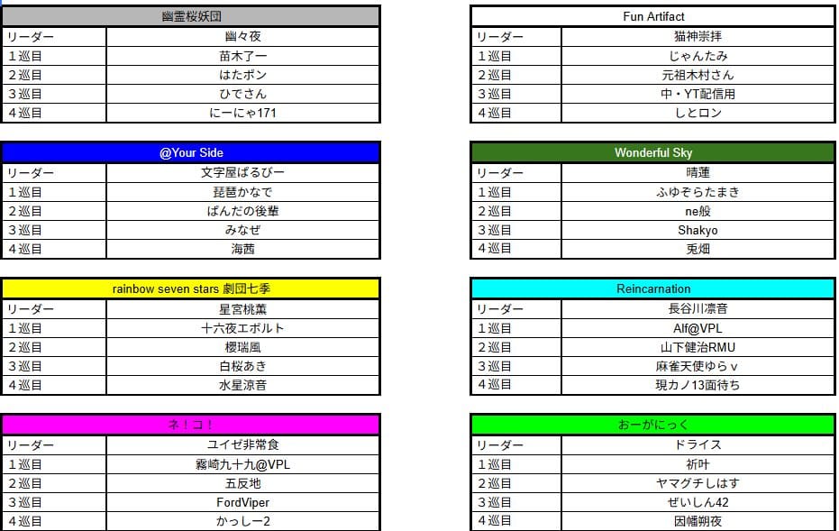 A卓:幽霊桜妖団 VS @your Side VS Reincarnation VS Wondeful Sky