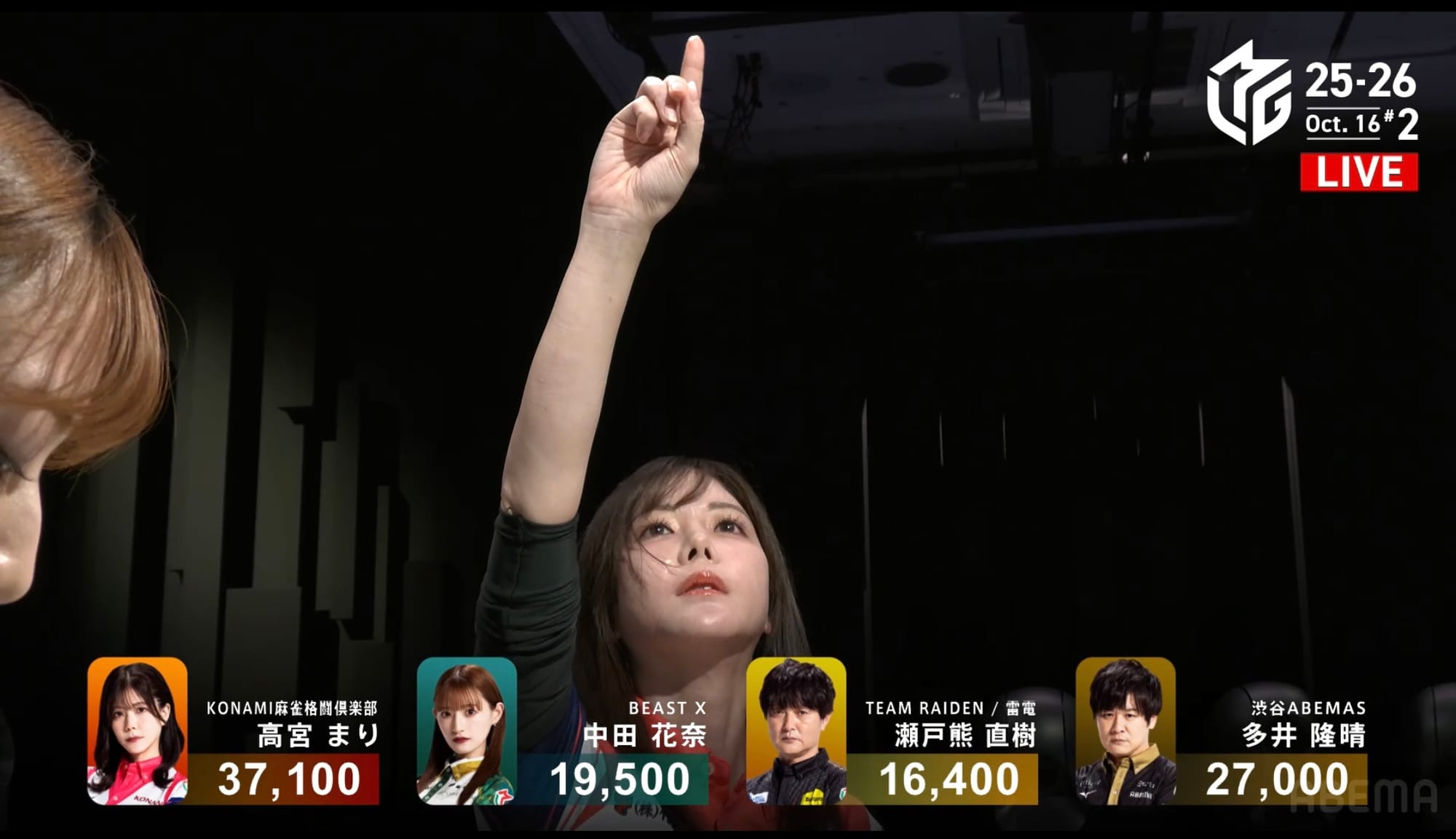 南1局はBEAST Ⅹ・中田が瀬戸熊から3900点のアガリ、