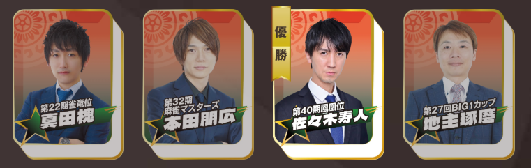 1 年をかけて各プロ団体のタイトルホルダー、Mリーガー、著名人雀士たちが激闘を繰り広げ、真の麻雀ナンバー1 の座を掴んだのは、佐々木寿人選手となった。