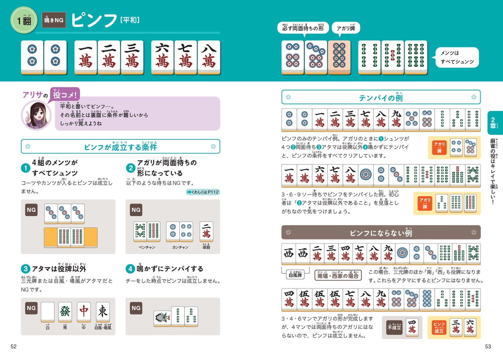 本書はタイトルの通り子どもや初心者をターゲットにした、マージャンの基本的なルールや役の解説書。子どもでも読みやすいマンガつき・フルカラーで製作されているほか、全ての漢字にフリガナがついているため、難しい読み方だらけのマージャン用語も安心して学ぶことができる。