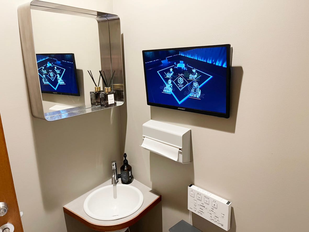 張さん:「勝負の分かれ目を見逃したくないというファンの心理を考えて、お手洗いの中にもモニターを設置しました。一打たりとも見逃させないという執念です(笑)」