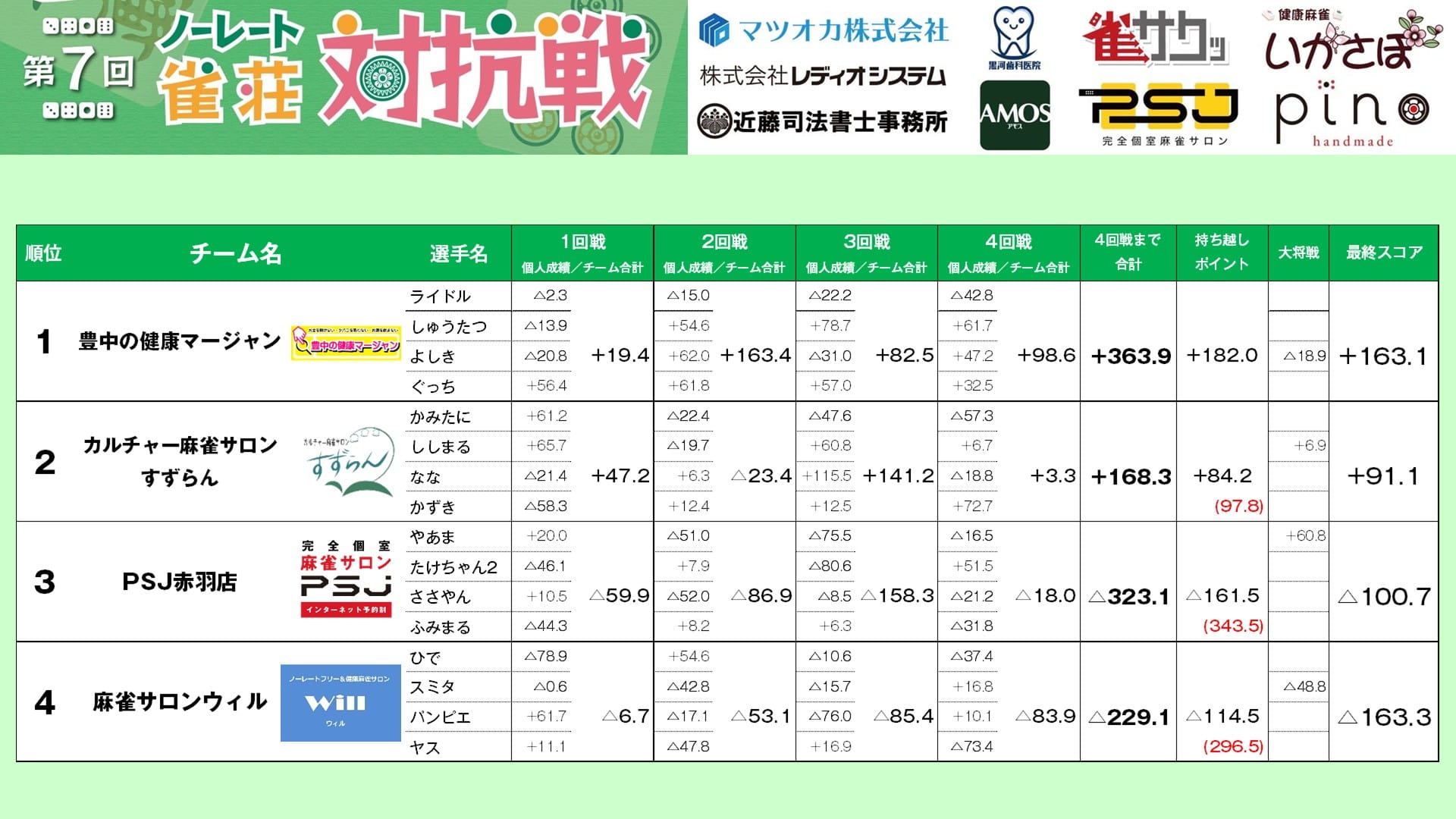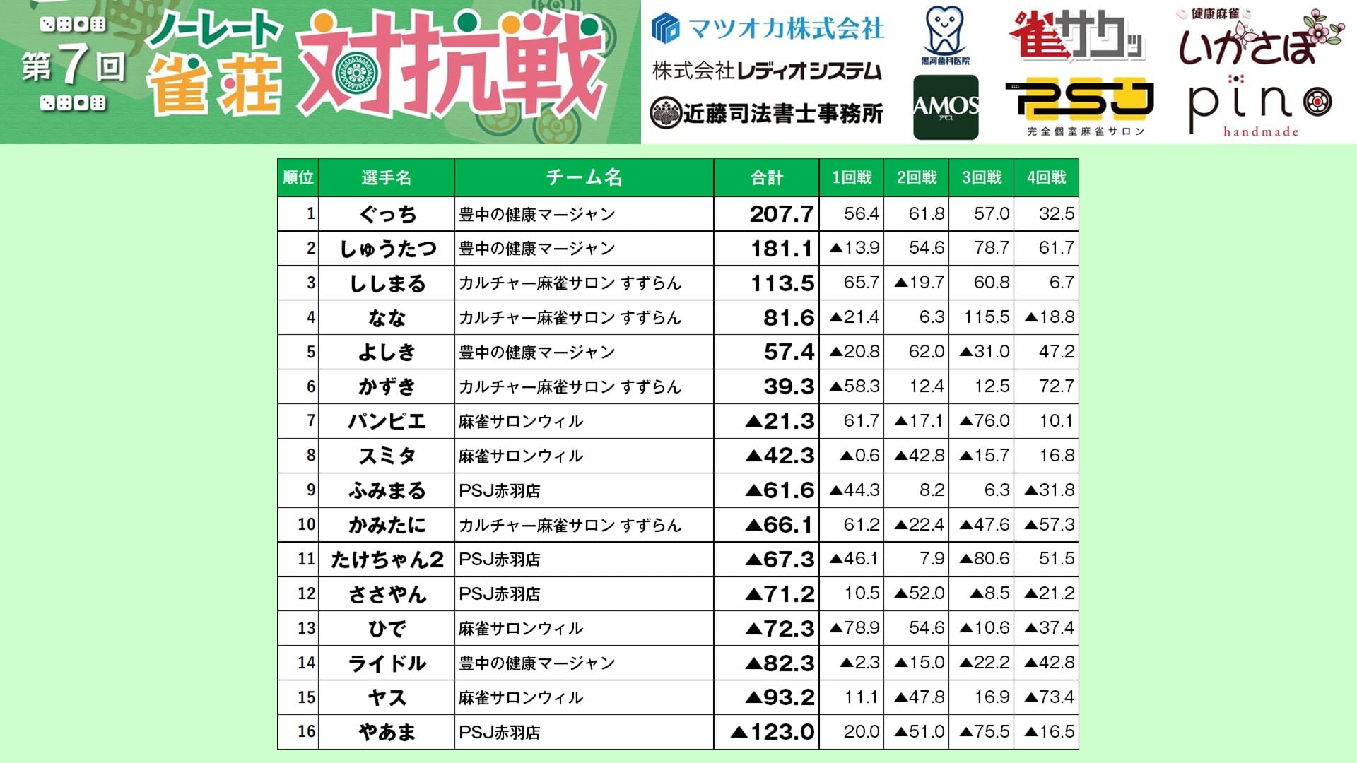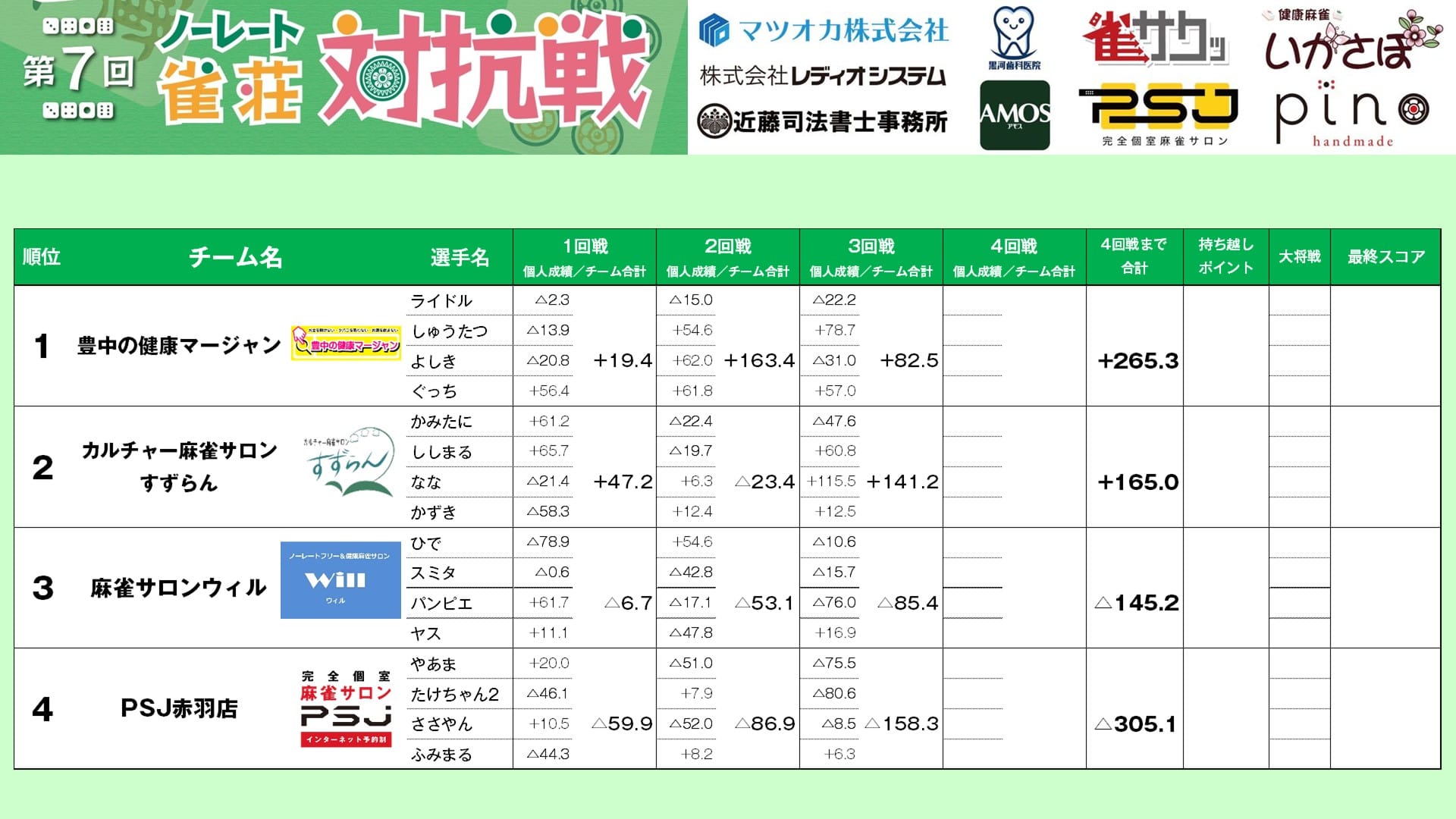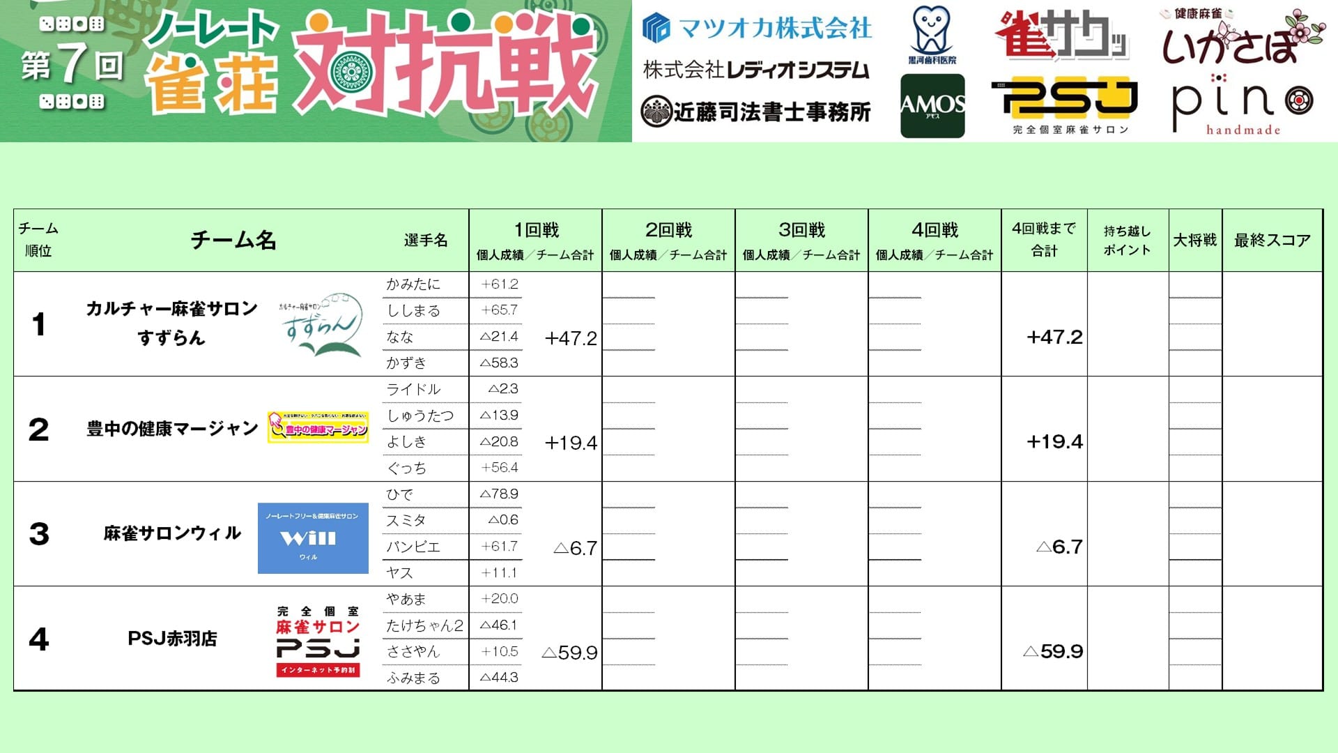 「第7回ノーレート雀荘対抗戦」メインページはこちら