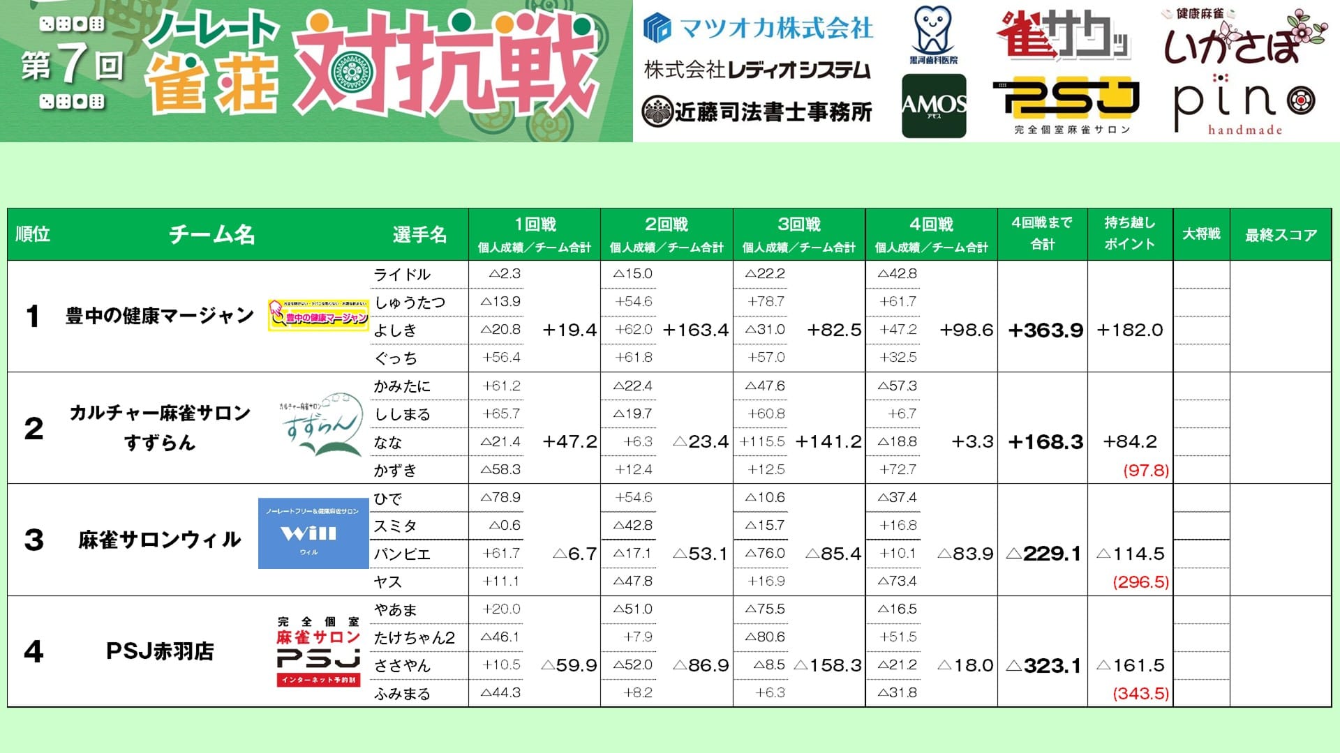 【ノーレート雀荘対抗戦】大阪「豊中の健康マージャン」が第7回を制す!