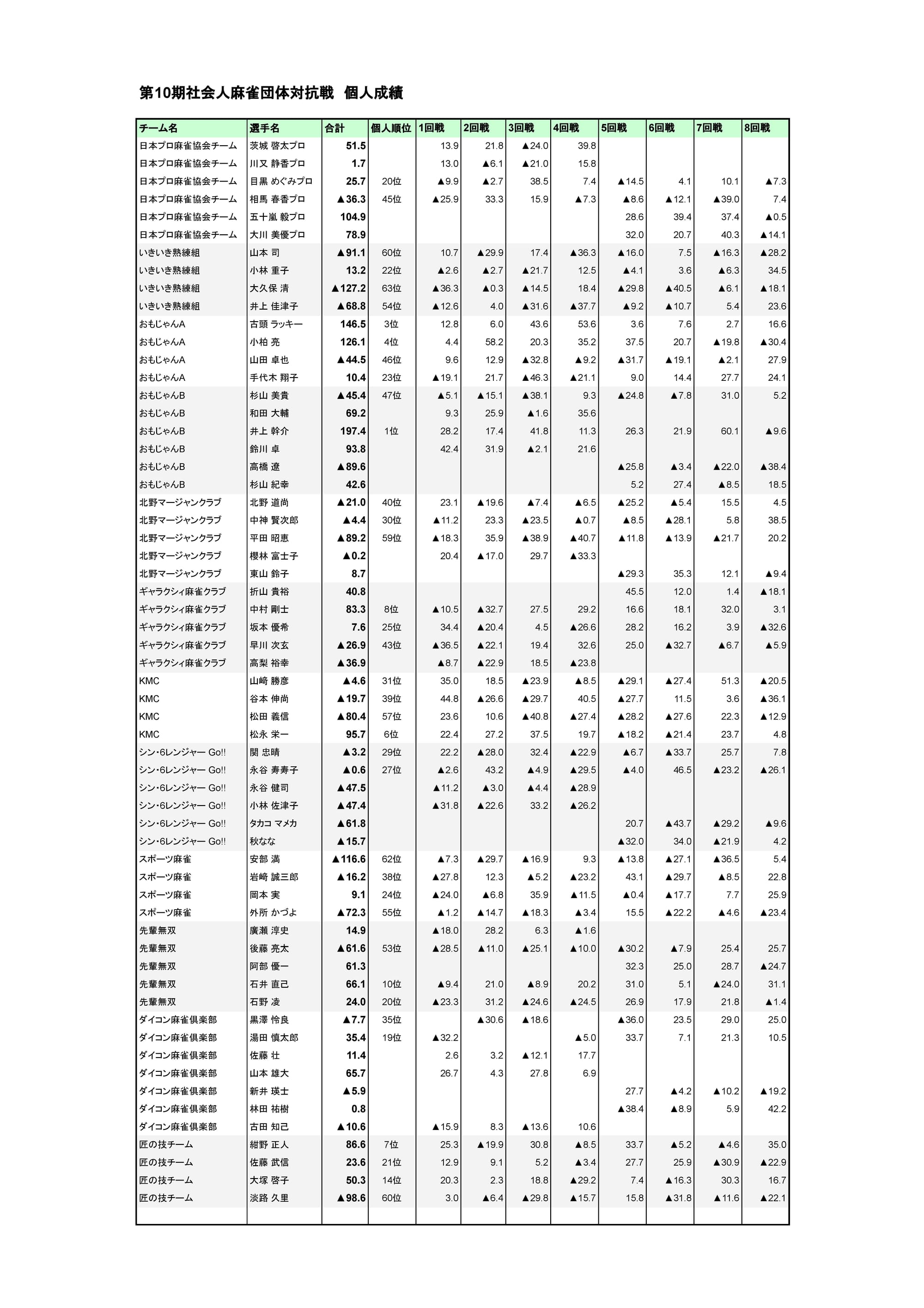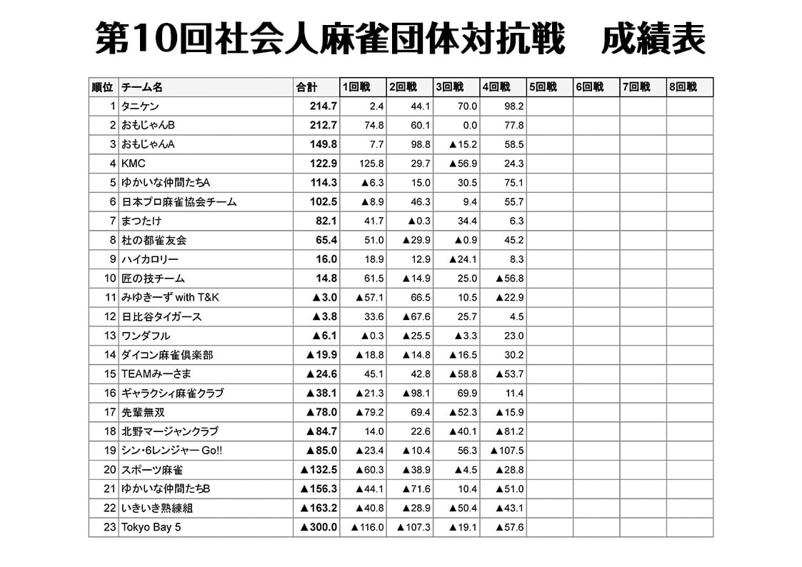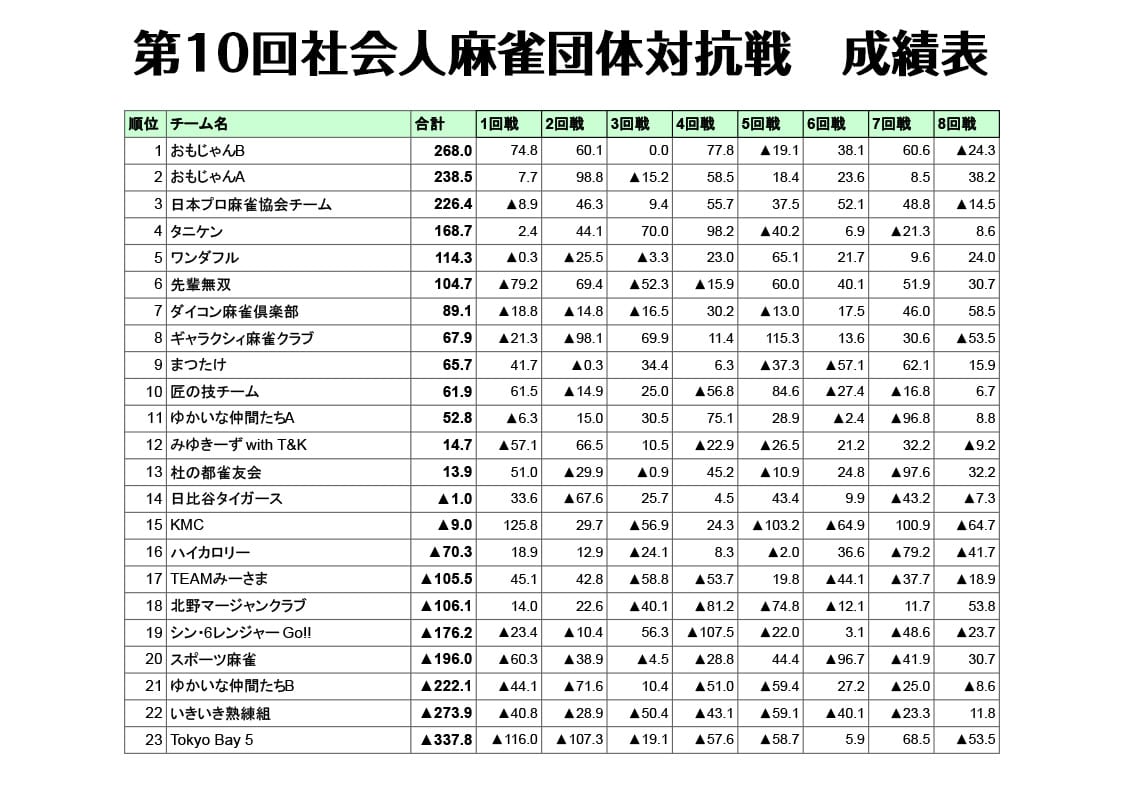 続いて3位に日本プロ麻雀協会チームがランクインした。