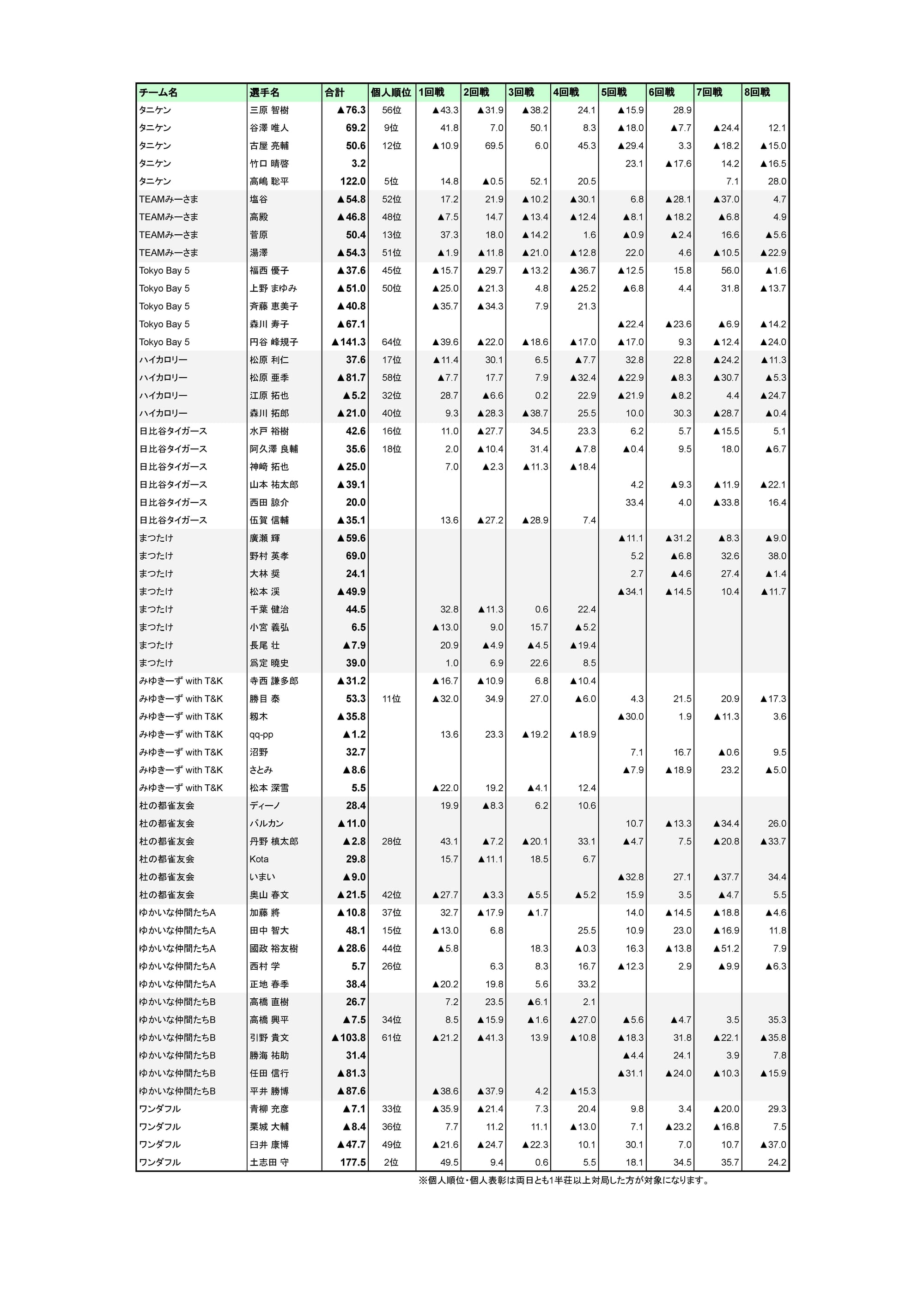 また、個人成績の部ではおもじゃんBチーム・井上幹介さんが197.4ポイントでチームを牽引し個人優勝。チーム優勝とともに2冠を果たした。