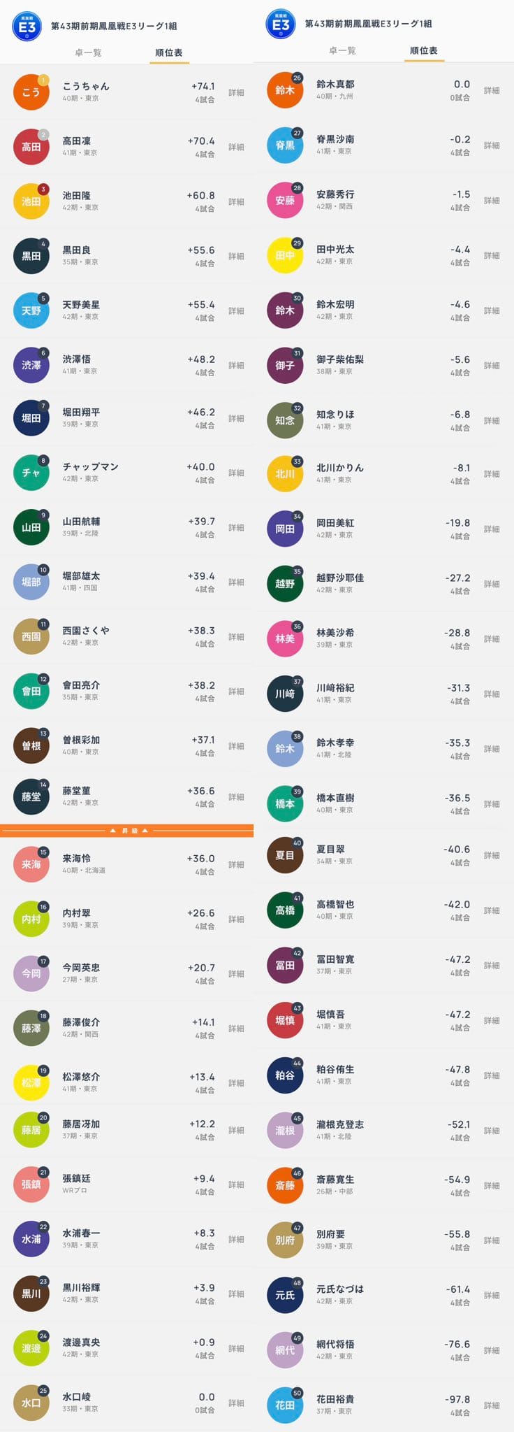 いよいよ本日より、Mリーグ2025-26シーズンのセミファイナルシーズンが幕を開ける。 セミファイナルシリーズはレギュラーシーズンのポイントを半分持ち越し、 「EX風林火山」:+348.7ポイント 「KONAMI麻雀格闘倶楽部」:+345.7ポイント 「BEAST Ⅹ」:+344.9ポイント 「赤坂ドリブンズ」:+123.3ポイント 「セガサミーフェニックス」:+62.1ポイント 「TEAM RAIDEN/雷電」:▲106.8ポイント こちらの6チームが4月30日(木)までの15日間で各20試合を争い、ファイナルシリーズ進出となる上位4位を目指す。 半分になったことで雷電はボーダーまでは200ポイント以上の差はあるものの、直接対決も多くファイナル進出に向けて現実味のあるポイント差に。 また上位3チームは混戦模様。下位3チームに比べ有利なポイント状況ではあるものの、今後逆襲を喰らい、ずるずるとボーダー際に引きずられないかが注目だ。 さらに、加入3シーズン目で初のレギュラーシーズンを突破したBEAST Ⅹはこのポイント有利でもある好機を波に初のファイナル進出もかかる重要なポストシーズ