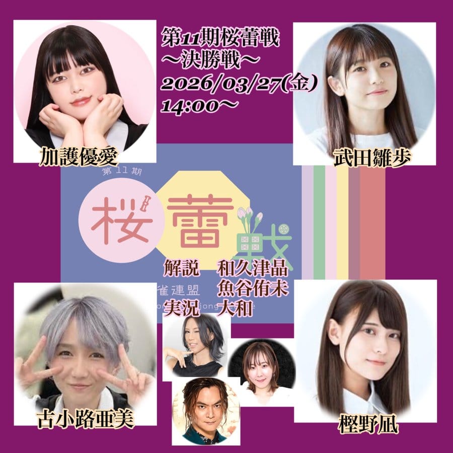 3月27日(金)14時より、第11期桜蕾戦決勝が行われ、対局の模様がOPENREC・YouTubeにて生配信された。