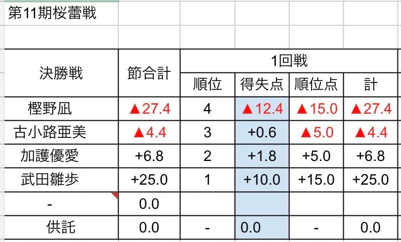 最後は追いかける加護選手がテンパイも流局し、武田選手が見事第11期桜蕾戦を制した。