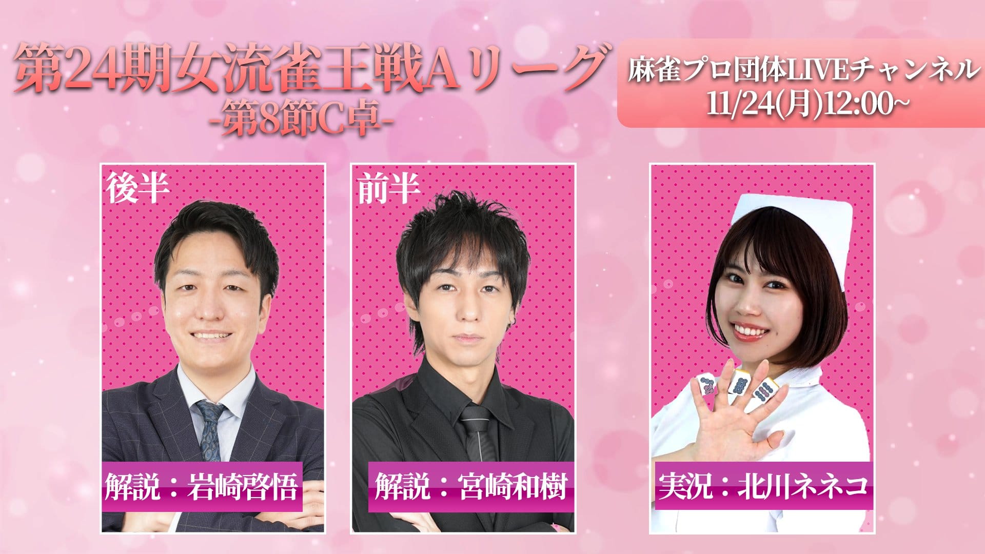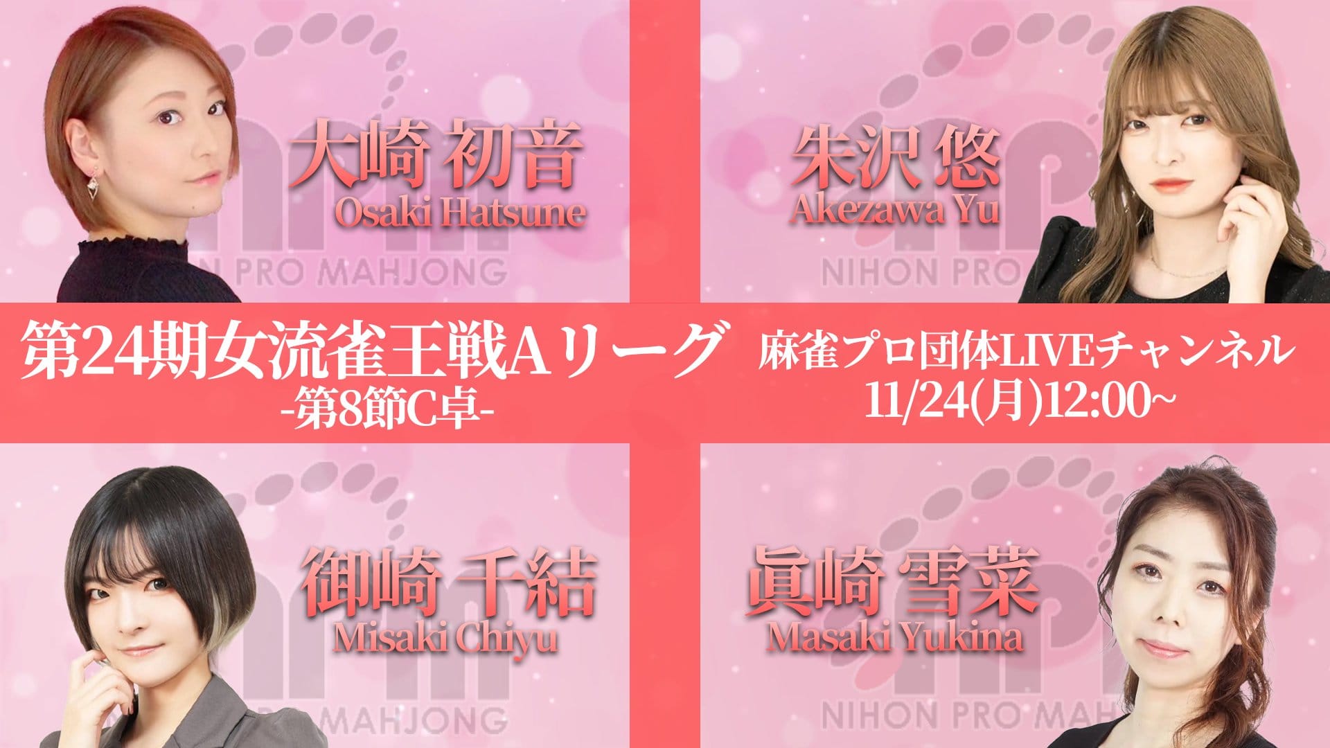 11月24日(月・祝)、日本プロ麻雀協会の女流リーグ最終節となる第8節の対局が行われ、A1リーグの模様が12時よりYouTube・ニコ生・OPENRECにて生配信された。