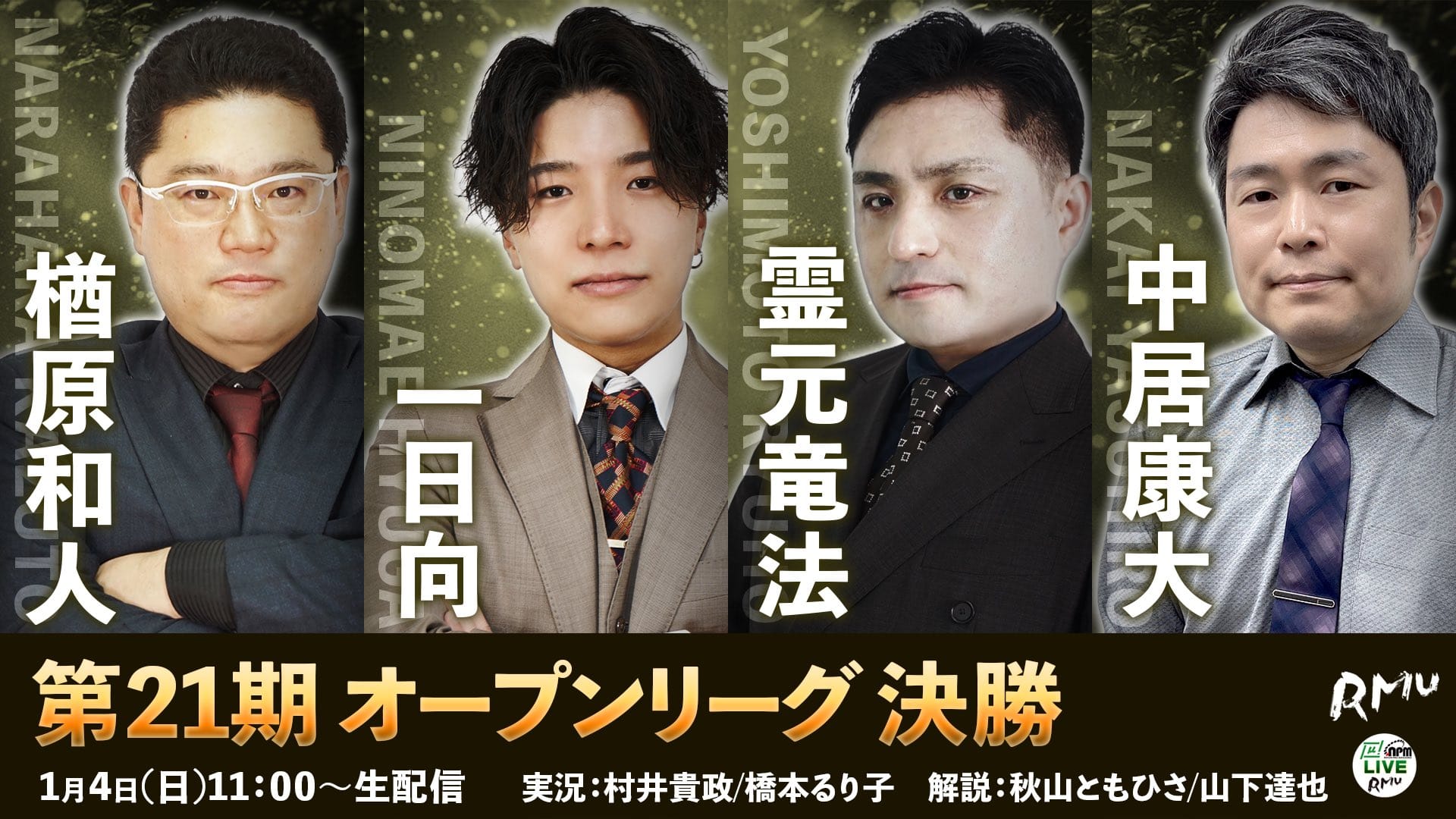 1月4日(日)11時より、第21期オープンリーグの決勝が行われ、対局の模様がYouTube・ニコ生・OPENRECにて生配信された。