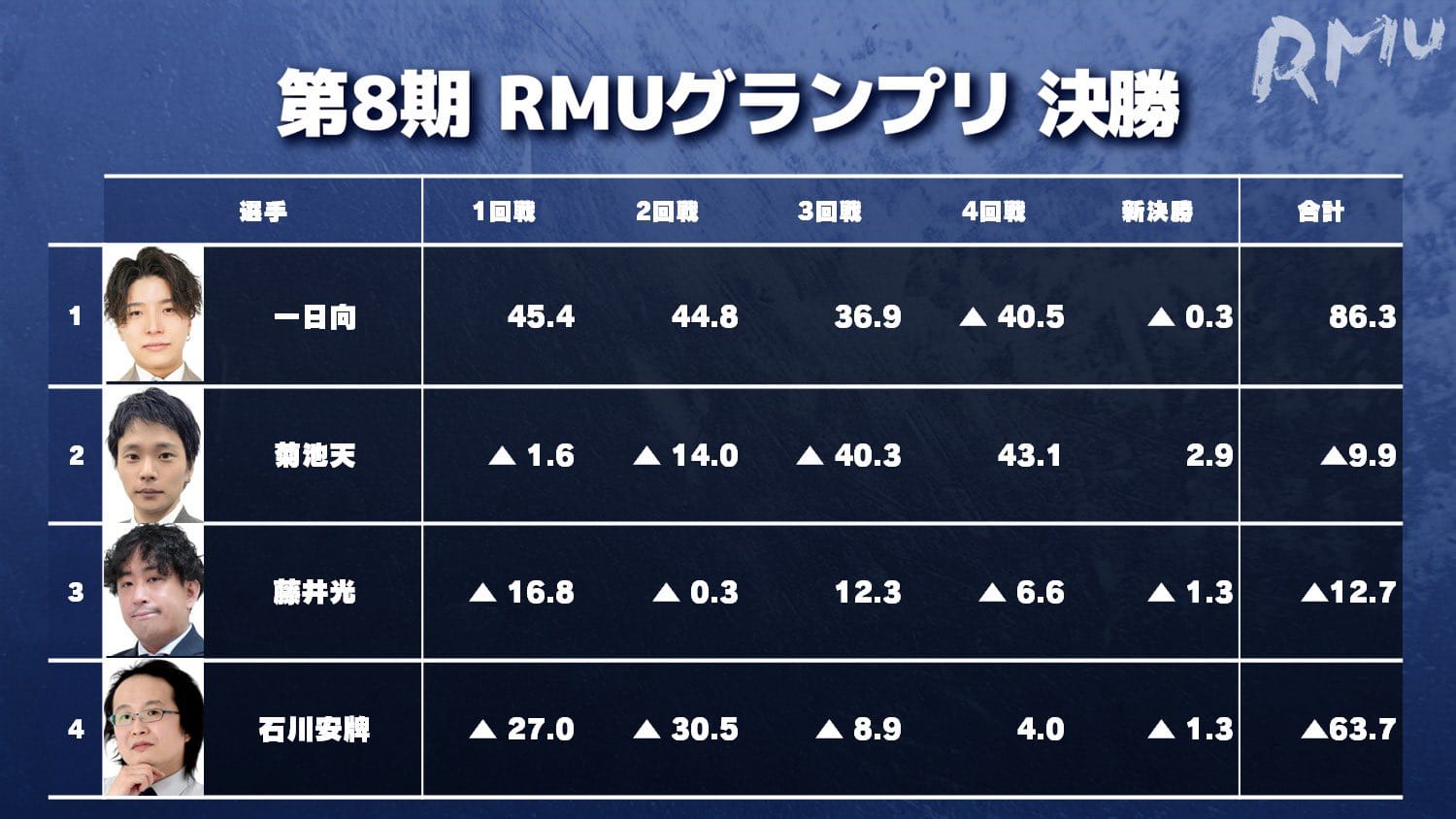 【RMU】第8期RMUグランプリ、優勝は一日向選手!