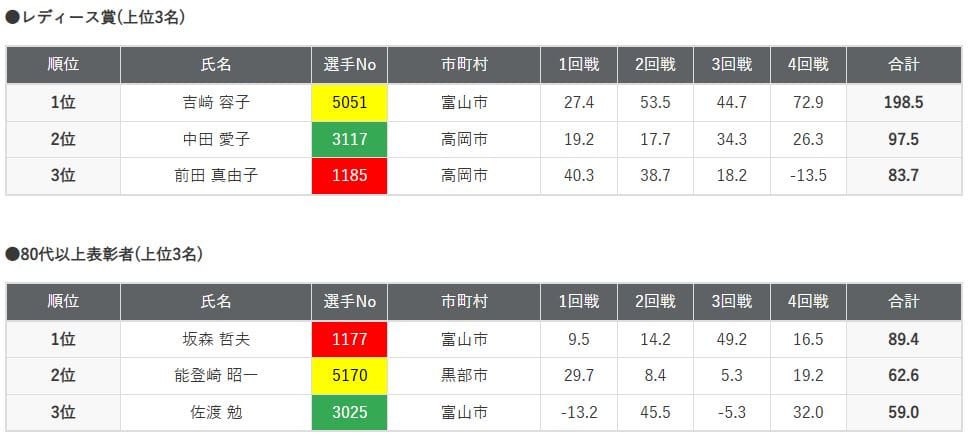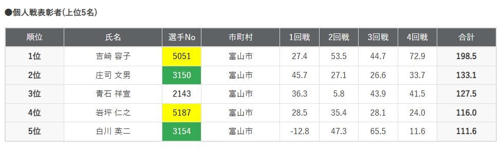 上位の成績を収めた方々は次の通り。
