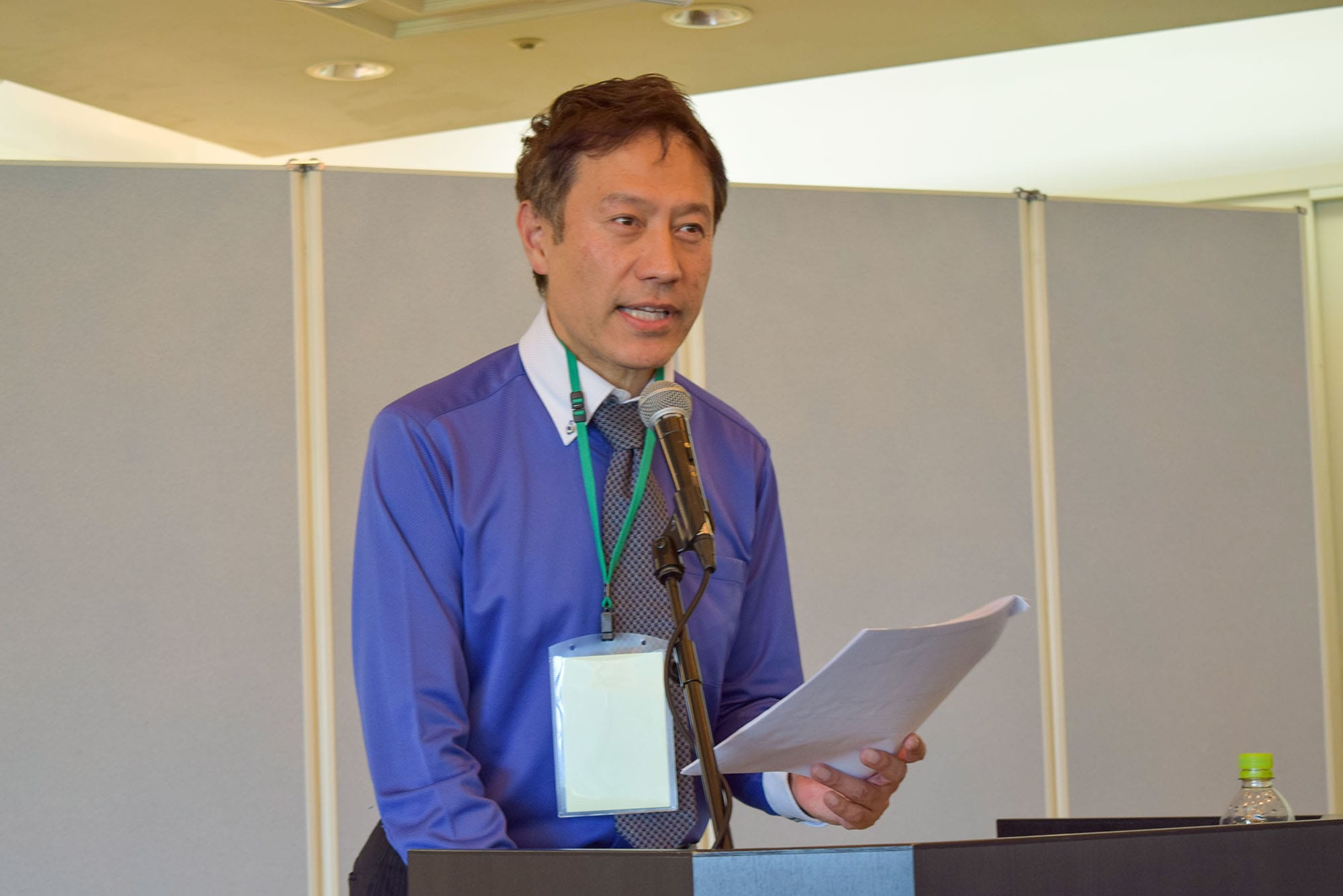 開会式はウエルネスマージャン伝道師でアナウンサーの奥平邦彦氏が務め、井出洋介プロと中国活力麻将連盟代表の張倹選手より挨拶があった。